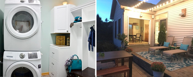 We know, we know — laundry is one of the most notoriously boring and time-consuming chores there is. But this home boasts a laundry room you might actually want to spend time in. The white built-ins provide plenty of storage and amp up the aesthetic, and the taller ceiling allows you to stack the machines to occupy as little room as possible. Once you're done folding, reward yourself with a refreshing beverage on the gorgeous outdoor patio!
