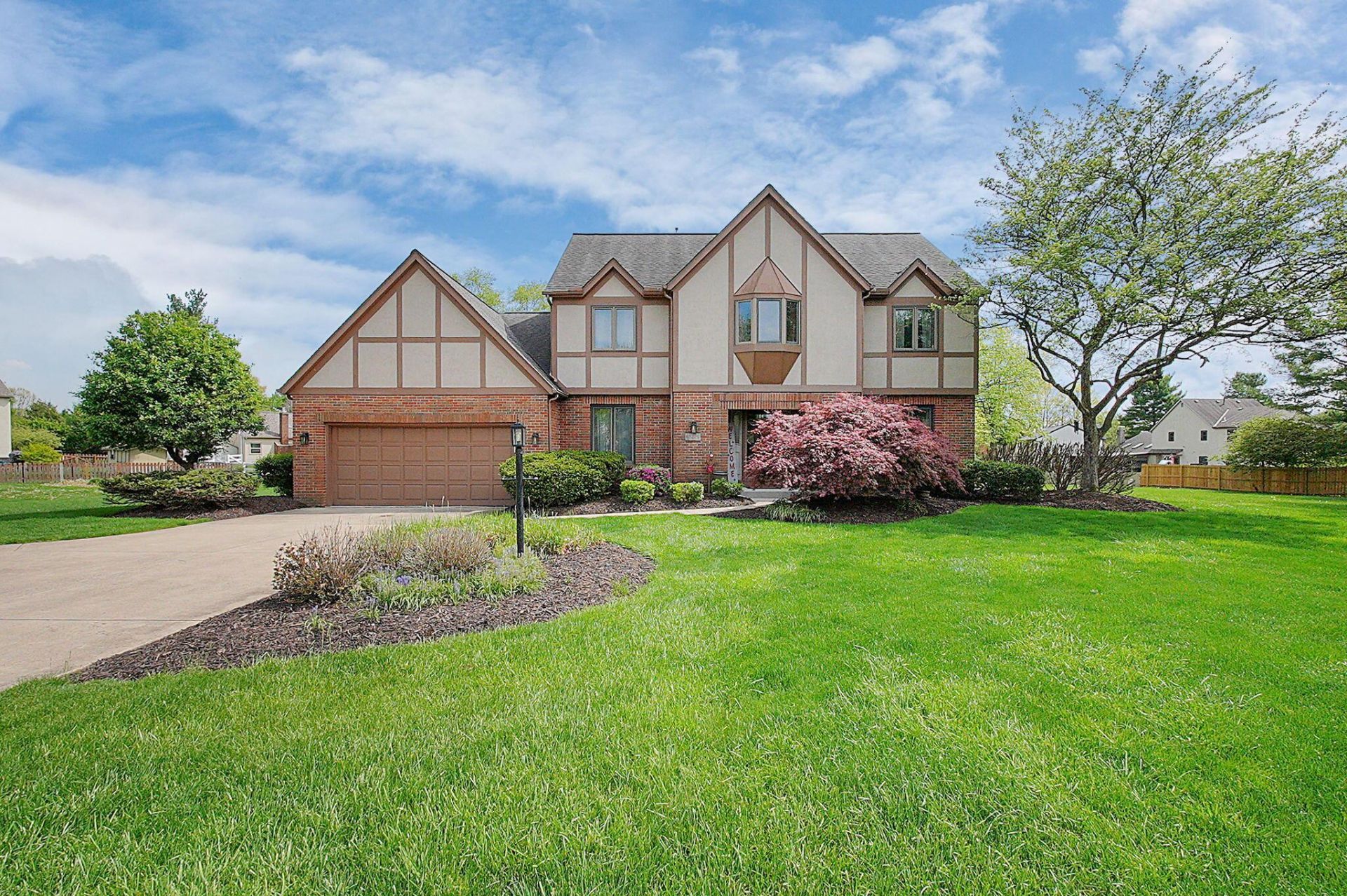 Honey! Stop The Car!!! Discover refined living in this quality built, Hiser home, offered by the original owner! Ideally situated on one of the largest lots in the highly desirable Countrywood subdivision. Showcasing timeless English Tudor-style architecture with a striking stucco and brick exterior, this home offers exceptional curb appeal and enduring character. Inside, you'll find four generously sized bedrooms and two and a half baths, thoughtfully designed for both comfort and functionality.A wide, central hallway welcomes you into the heart of the home, leading to a beautifully appointed kitchen featuring top of the line appliances, granite countertops, abundant cabinetry, and a spacious pantry, perfect for everyday living and entertaining alike.The inviting sunken family room impresses with soaring ceilings, skylights that flood the space with natural light, and a cozy fireplace, creating a warm yet airy gathering space. From here, step outside to your private retreat on an expansive 0.68-acre cul-de-sac lot. The outdoor setting is equally remarkable, featuring a stunning in-ground pool, patio, and a pergola-covered deck overlooking the fully fenced, meticulously maintained lawn, ideal for relaxing or hosting unforgettable gatherings. The large basement offers finished area, utility area and crawl space. Located within the highly regarded Pickerington North School District, this home seamlessly blends quality craftsmanship, elegant design, and an exceptional setting. A rare opportunity to own a truly distinctive property in one of the area's most sought-after neighborhoods.