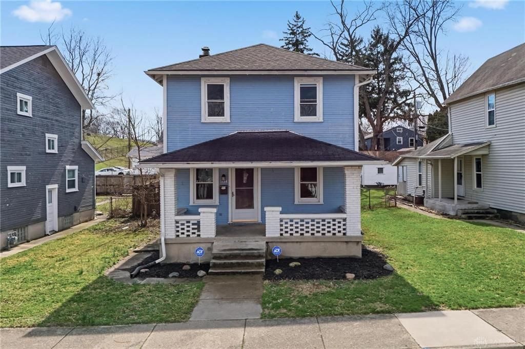 Great home and Investment opportunity near the University of Dayton and downtown Dayton with strong rental potential and a history of tenant demand in the area. This two-story home offers approximately 1,452 square feet with 3 bedrooms and 2 full bathrooms. The main level features refinished hardwood floors (2025), a spacious front living room, and a dining room with a built-in window seat and arched doorway detail. A full bathroom is located off the dining room and features a distinctive stained glass window. The kitchen includes a marble backsplash and connects to a rear laundry and mudroom area. Upstairs you’ll find three bedrooms, including a bright front bedroom with generous closet space. A second full bathroom serves the upper level. Major mechanical updates include a new roof (2024) and central air (2024). Additional features include a full basement, vinyl windows with some original wood windows remaining, a covered front porch, and a detached one-car garage. Located near the University of Dayton campus and downtown Dayton amenities, this property offers convenient access to major employers, dining, and entertainment.