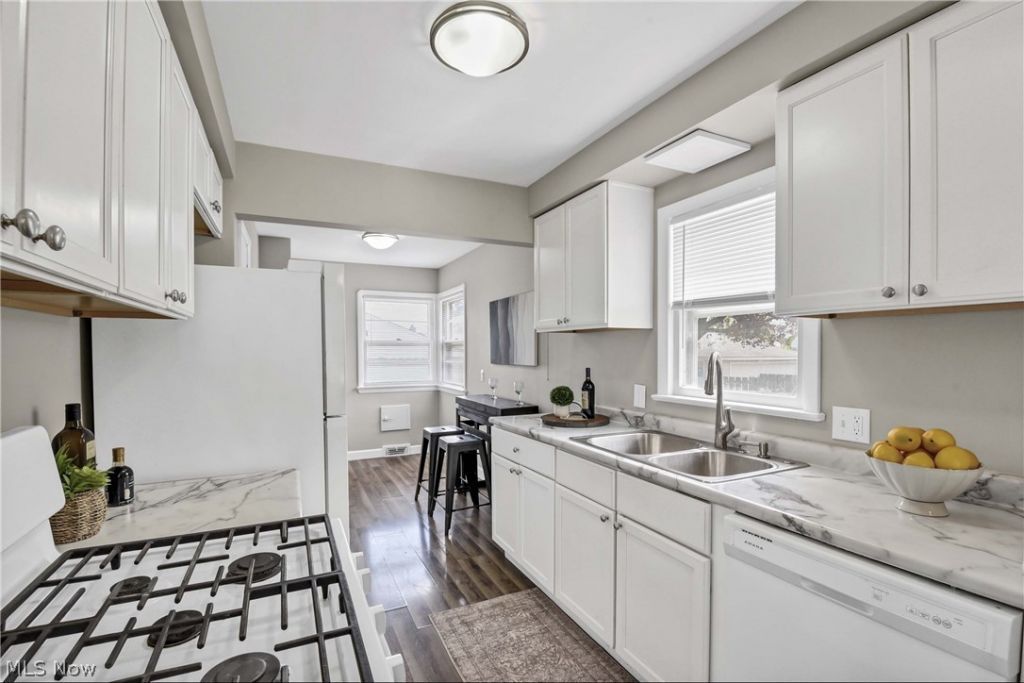 Prepare to be moved! This charming ranch home in Parma Heights offers comfort, functionality, and a convenient location. Freshly updated with interior paint, this well-maintained 1956 home features 3 bedrooms and 2 full bathrooms with approximately 1,532 square feet of finished living space, including a partially finished basement. The main level offers warm wood flooring throughout the spacious living room and all three bedrooms, creating a cohesive and inviting feel. The kitchen and adjacent dining area feature durable LVP flooring for easy maintenance and everyday practicality. The lower level expands your living space with approximately 468 sq ft recreation room finished with LVP flooring, ideal for casual entertaining, hobbies, or additional relaxation space. Outside, enjoy a fenced backyard and a patio area well-suited for outdoor gatherings or quiet evenings at home. Additional highlights include a two-car detached garage, paved driveway, and forced-air gas heating for year-round comfort. Conveniently located within the Parma City School District and close to parks, medical facilities, shopping, and everyday amenities, this home offers a great opportunity to enjoy a well-situated property with versatile living space.