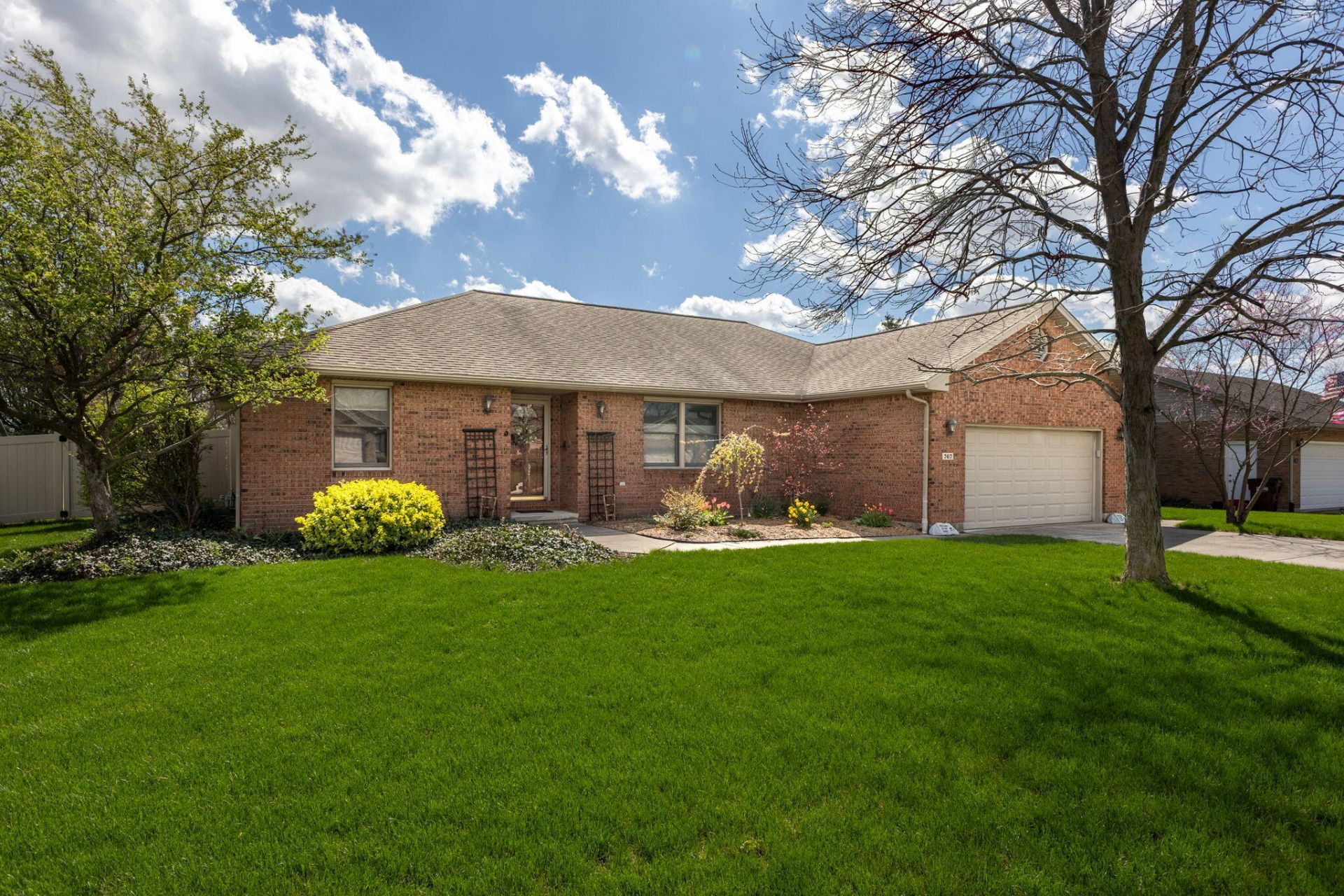 From the moment you pull up, you can tell this ones been cared for in a way that actually shows. The all-brick exterior, gorgeous mature landscaping, and standout curb appeal set the tone before you even step inside. Offering 1-level living with 3 bedrooms, 2 full baths, and over 1,700 sq ft, this home delivers space that feels both open and comfortable. You walk in and immediately notice how everything opens up. Vaulted ceilings and skylights pull in natural light, while the fireplace keeps the space feeling grounded and inviting. The kitchen features clean white cabinetry, quartz countertops, a pantry, and plenty of workspace, all flowing easily into the dining area surrounded by windows--one of those spots that naturally becomes part of your daily routine, whether its morning coffee or dinners that last a little longer than planned. This is a true split floor plan, offering a private primary suite tucked away from the other bedrooms, complete w/ its own en suite bath and walk-in closet. The additional bedrooms are comfortable and flexible for guests, office space, or hobbies. Theres also a dedicated laundry area and a 2-car attached garage, adding to the everyday ease of the home. Throughout, youll notice updated flooring, neutral tones, and finishes that feel consistent and intentional from room to room. From there, everything leads you out to the screened-in porch--and this is where the house really separates itself. Its not just a porch, its a full extension of the living space, complete with string lights, a ceiling fan, mounted TV, and room for both dining and seating. Step beyond and youll find a private, vinyl-fenced backyard that feels like its own little oasis--beautifully maintained, manageable, and complete with a storage shed for added convenience. A quiet street - centrally located near the park, school, and shopping/dining. You are going to LOVE making memories here, call today!