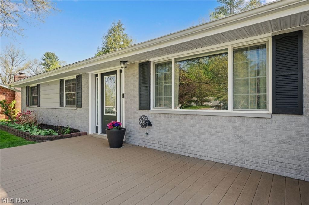 Welcome home to this beautifully updated ranch in the heart of Sagamore Hills, perfectly situated on nearly an acre of private, park like property. Step inside to an open and airy floor plan featuring rich solid hardwood bamboo flooring throughout the main living areas and an abundance of natural light. The spacious living room is the true centerpiece, complete with a stunning fireplace, custom mantel, and sliding doors that lead directly out to the backyard that is perfect for everyday living and entertaining. The updated kitchen offers ample cabinetry, stainless steel appliances, and a functional layout that flows seamlessly into the main living space. This home features 3 comfortable bedrooms plus a versatile flex room that can easily be used as a home office, guest room, or additional bedroom. Both bathrooms have been tastefully updated, including a beautifully renovated full bath with a modern walk in shower. Step outside and enjoy everything this property has to offer. The expansive, flat backyard features a large deck, fire pit area, and a playground that stays creating the perfect outdoor setup. The detached outbuilding provides additional storage, workshop space, or endless possibilities to fit your needs. With its ideal layout, thoughtful updates, and incredible outdoor space, this Sagamore Hills ranch is truly move-in ready.